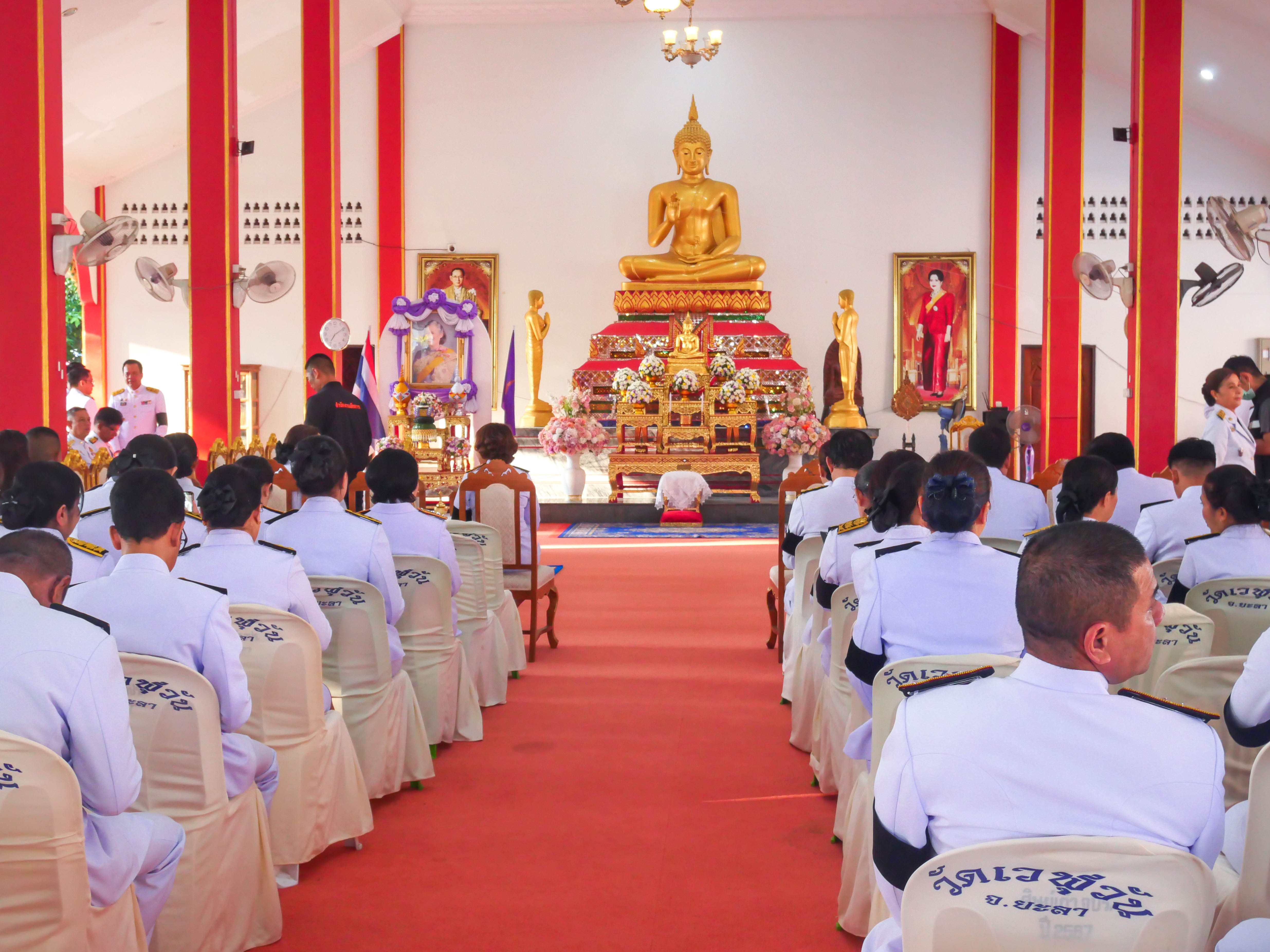 อุตสาหกรรมจังหวัดยะลา มอบหมายให้นางสาวพันธณีย์ ชุมทอง นักวิชาการอุตสาหกรรมชำนาญการ นางสาวกัลยา แก้วดี เจ้าพนักงานพัสดุชำนาญงาน และเจ้าหน้าที่สำนักงานอุตสาหกรรมจังหวัดยะลาเข้าร่วมพิธีเจริญพระพุทธมนต์ และทำบุญตักบาตรถวายพระราชกุศลเฉลิมพระเกียรติ