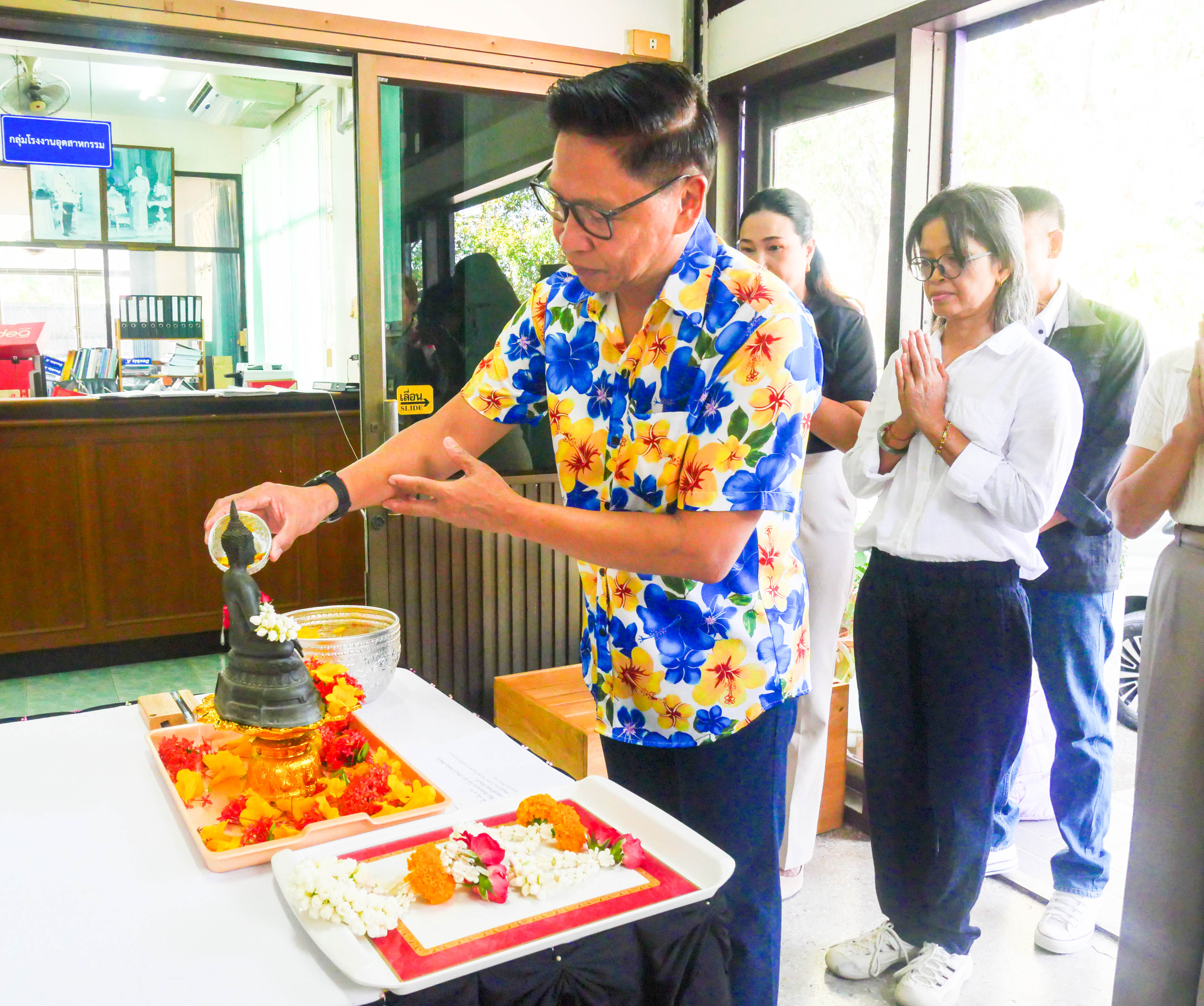 นำโดยนายสมบัติ สุวรรณมณี อุตสาหกรรมจังหวัดยะลา จัดพิธีสรงน้ำพระและรดน้ำขอพร