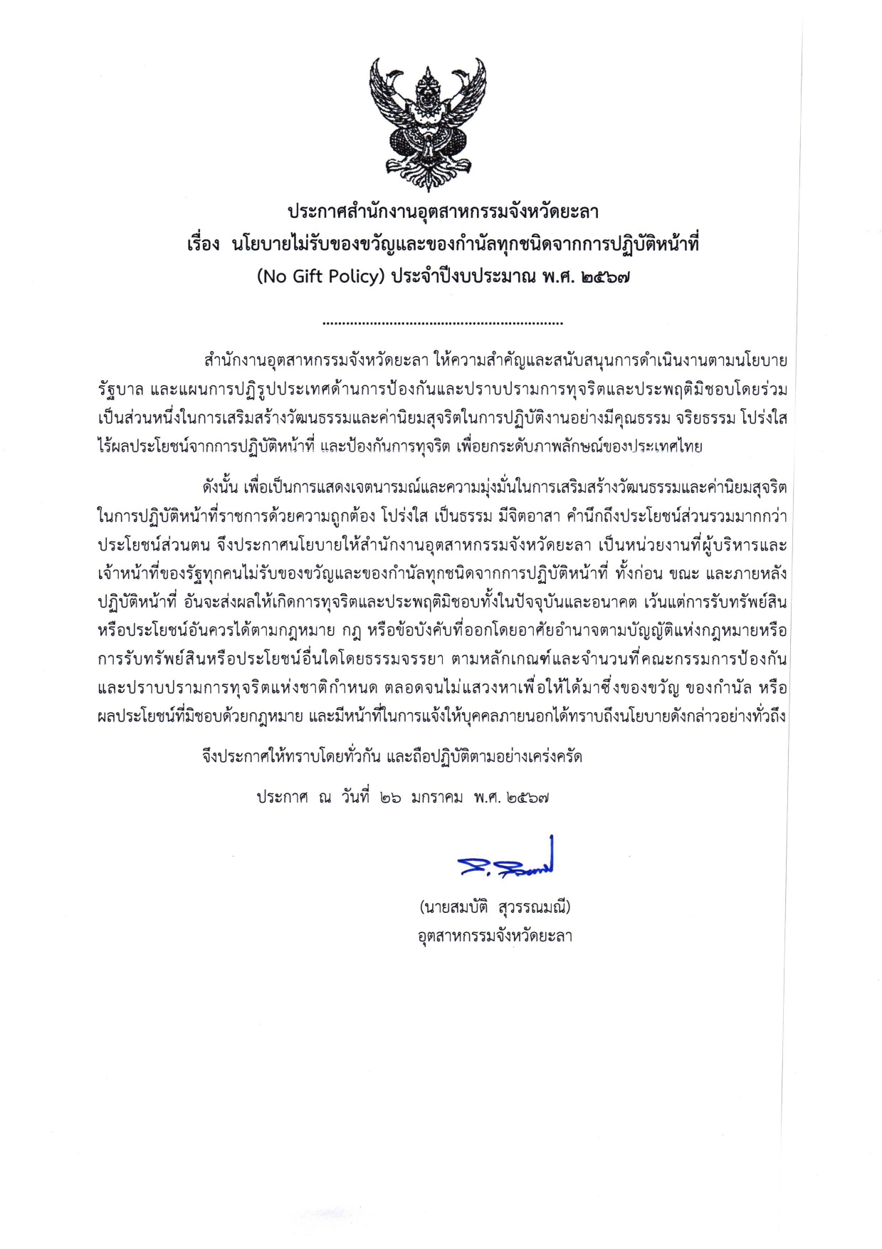 | NO GIFT POLICY 2567 สำนักงานอุตสาหกรรมจังหวัดยะลา.pdf |